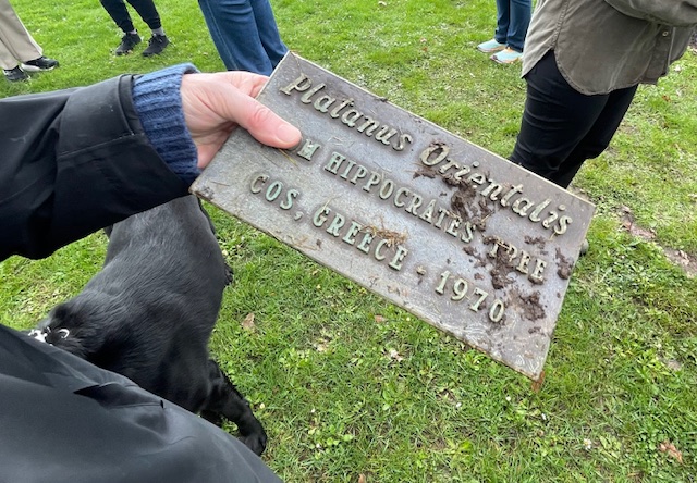 Did you know that BC Children’s Hospital is home to a descendent of the original Tree of Hippocrates? Yes – the very tree on the Greek island of Kos that was alive at the time of Hippocrates, who according to legend, spent hours under the tree teaching medical ethics to his students. A direct descendant of the Hippocratic tree was planted on our site over 50 years ago by Dr. Bill Gibson, a celebrated neuroscientist at UBC. Bill entrusted the care of the tree to Dr. Judy Hall, who has since entrusted stewardship of the tree to Dr. Tim Oberlander. The tree is located south of the Shaughnessy Building, just west of the Healthy Minds building (Map).